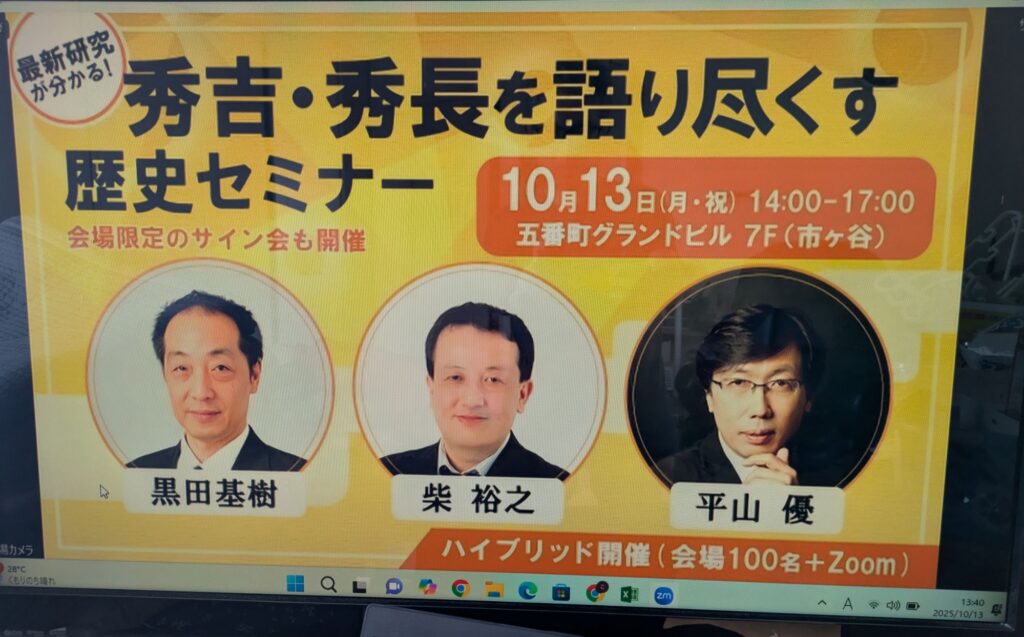 角川主催の、来年2026年の大河ドラマ豊臣秀長をメインテーマにした歴史セミナーに参加した。有料だったが、十分に元が取れる内容だった。
